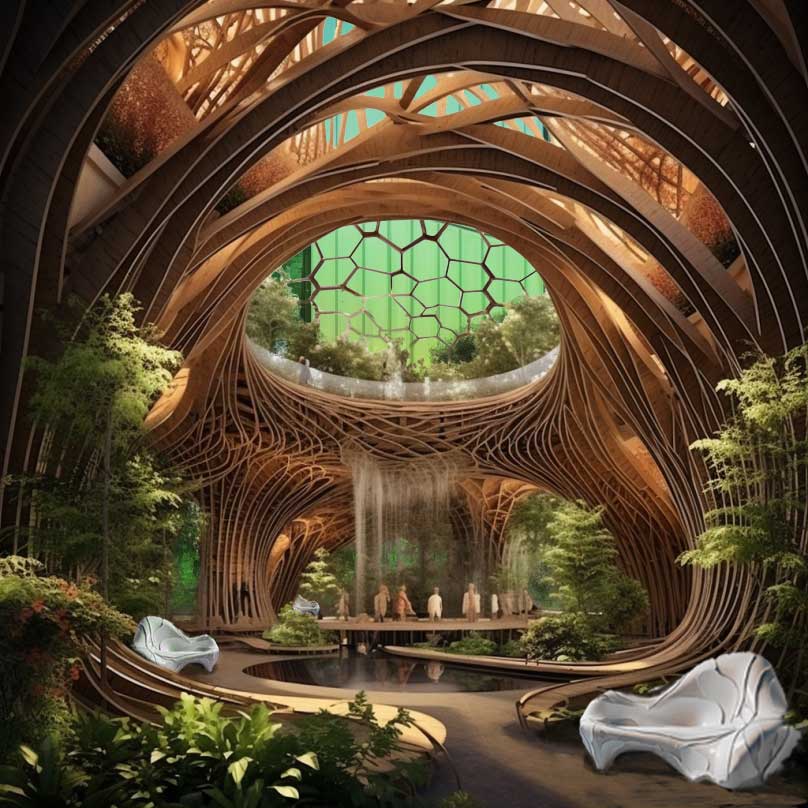 The incorporation of sustainability, biophilic design and the golden ratio further enhances the connection between humans and nature, promoting well-being and health with biobased materials.